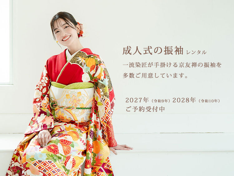 当社は、京都市下京区に実店舗を構え、伝統的な技術を持った染元や織元が生み出す上質の着物から、現代のさまざまなシチュエーションに対応できる和装までを、幅広く取り揃えたレンタル&サロンでございます。