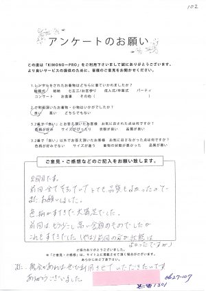 ★この度は、一つ紋のお着物を早速手配して頂きましてどうもありがとうございました。