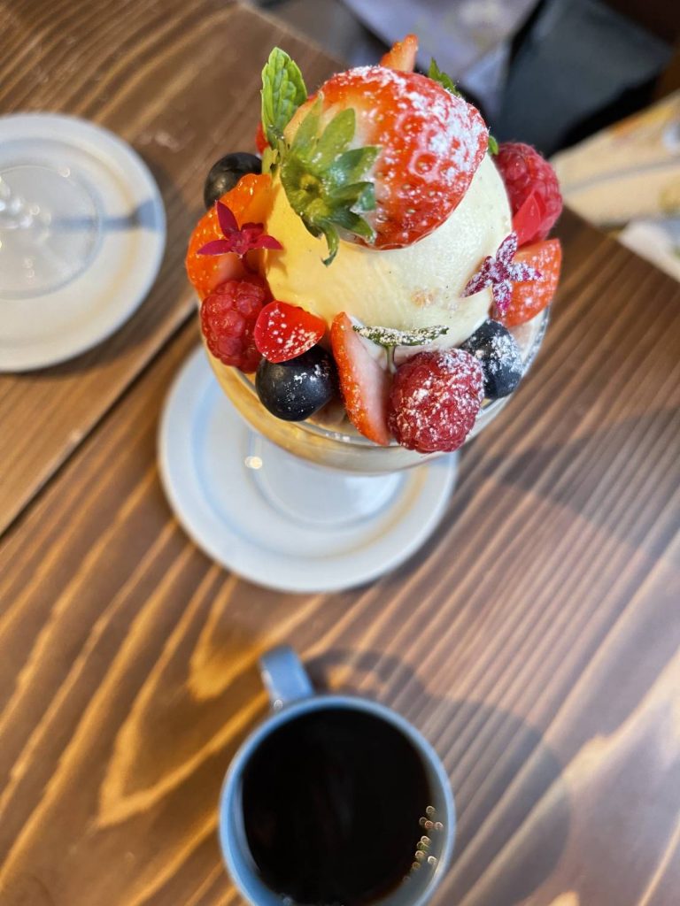 フルーツ・クリーム・アイス・クラッシュしたクッキーすべてが新鮮で美味しいものなので、合わさってパフェになるとより美味しくいただけました。