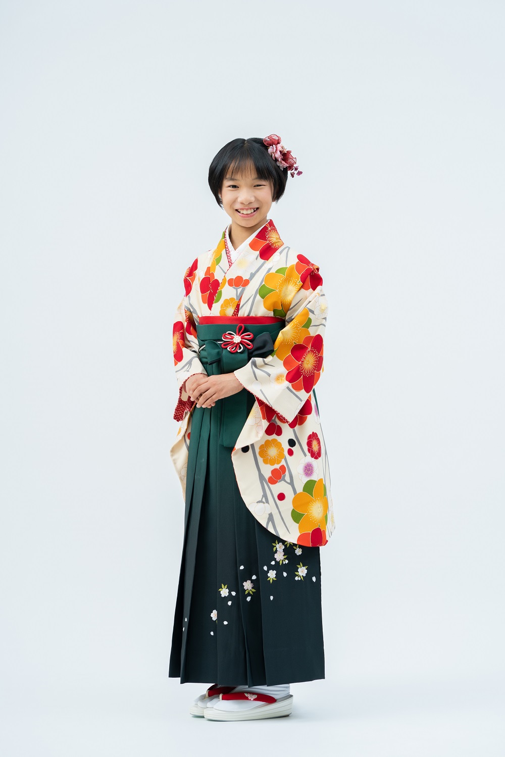 小学生向けの袴レンタルの商品です。袴は変更できますので、お気軽にお申し付けください。