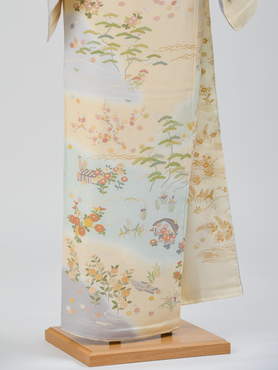 【少し幅広の訪問着レンタル】クリーム系で少し落ち着いた柄・品番:HL-17 LOサイズ