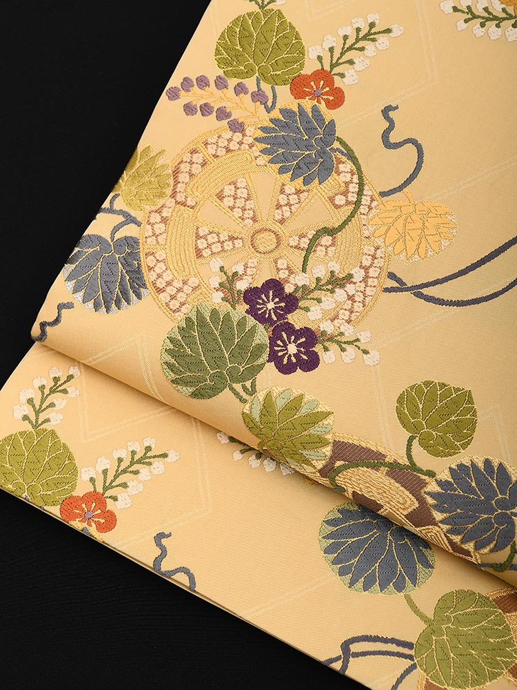 ■【高級帯レンタル】obi-23-231 鈴木謹製 葵柄 サイズ 葵