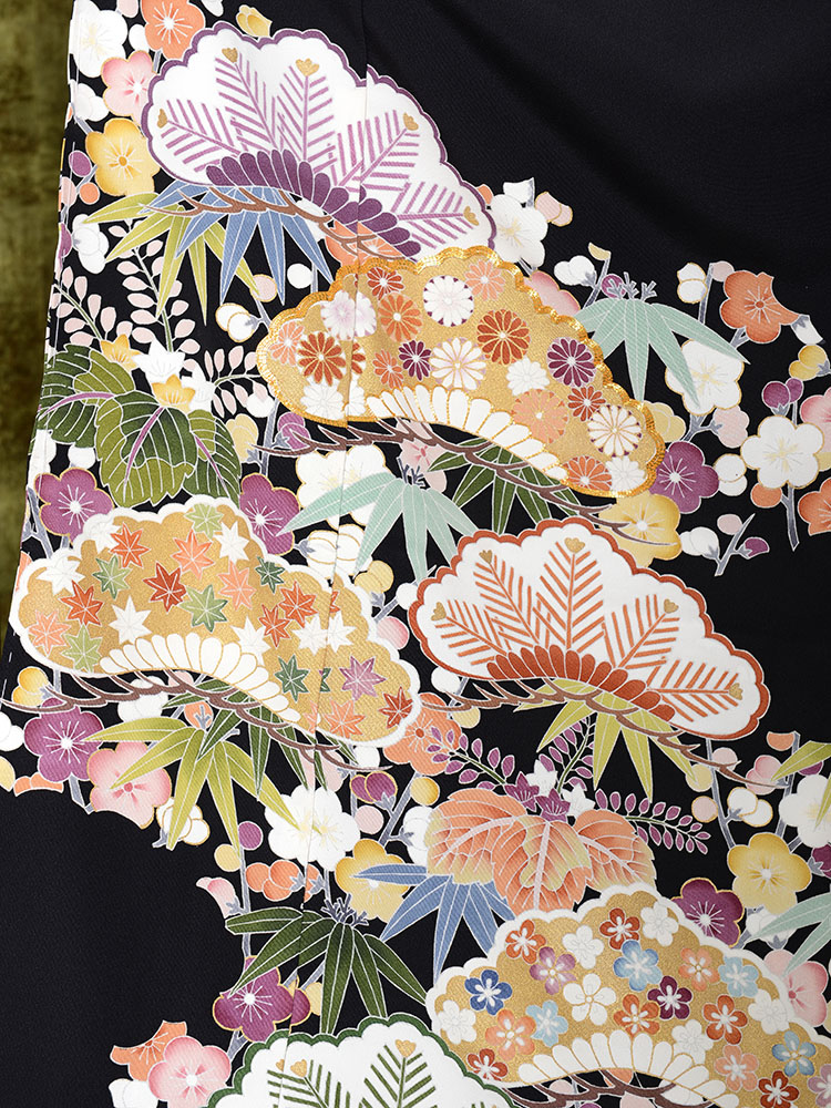 色鮮やかな松竹梅柄の黒留袖レンタル。